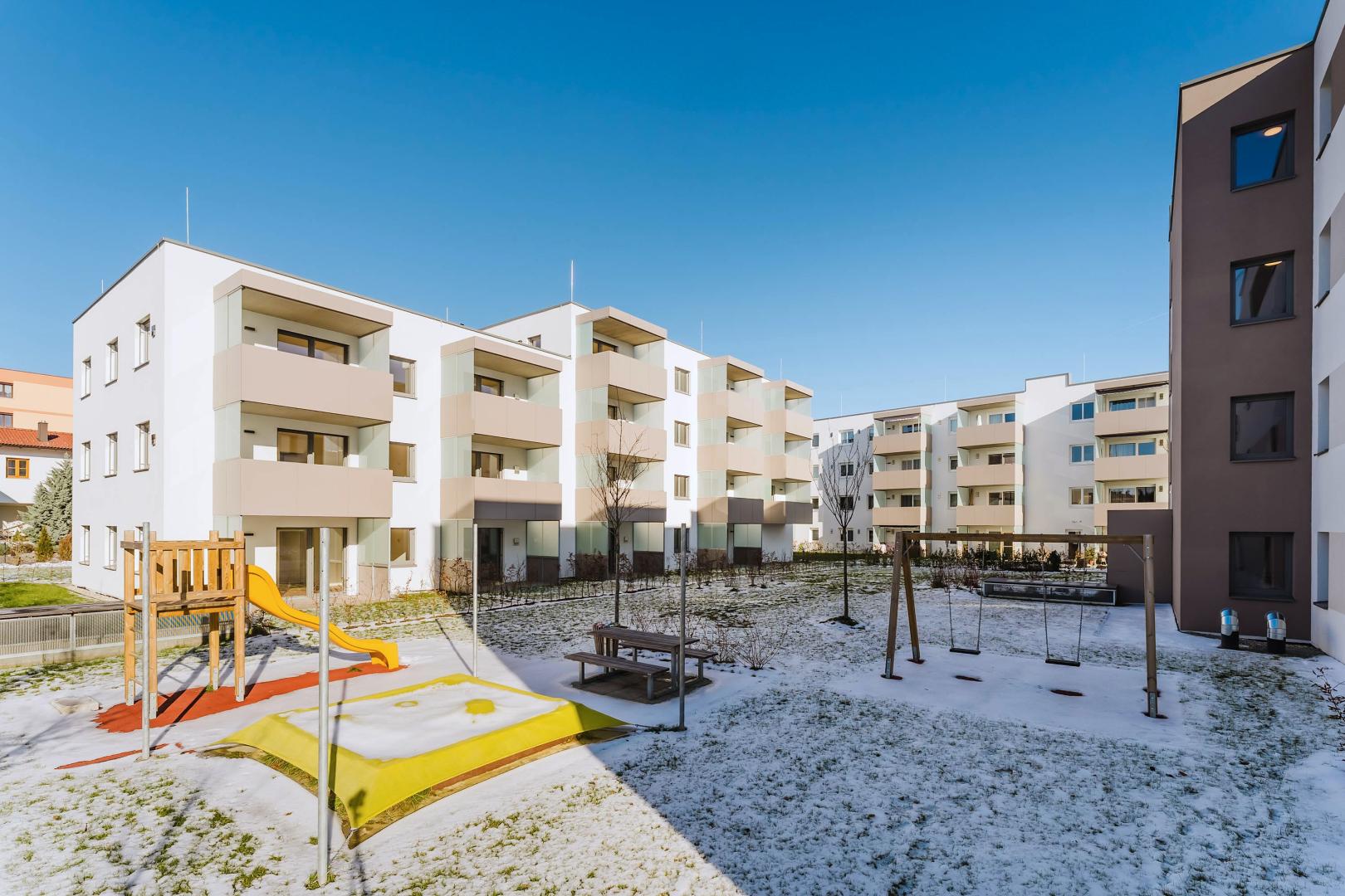 Die freifinanzierten Eigentumswohnungen, welche in den Häusern 1 und 2 in vier Geschoßen Platz finden, sind als 2- und 3-Zimmer-Wohnungen konzipiert. Jeweils mit 2 Grundrissmodellen wie folgt: 3-Zimmer Typ A mit ca. 76 m² und 2-Zimmer Typ B mit ca. 55 m² (inkl. Loggien). Die Loggien, Balkone oder Eigengärten sind optimal nach süd-west ausgerichtet. Selbstverständlich gibt es einen Lift und eine Tiefgarage.