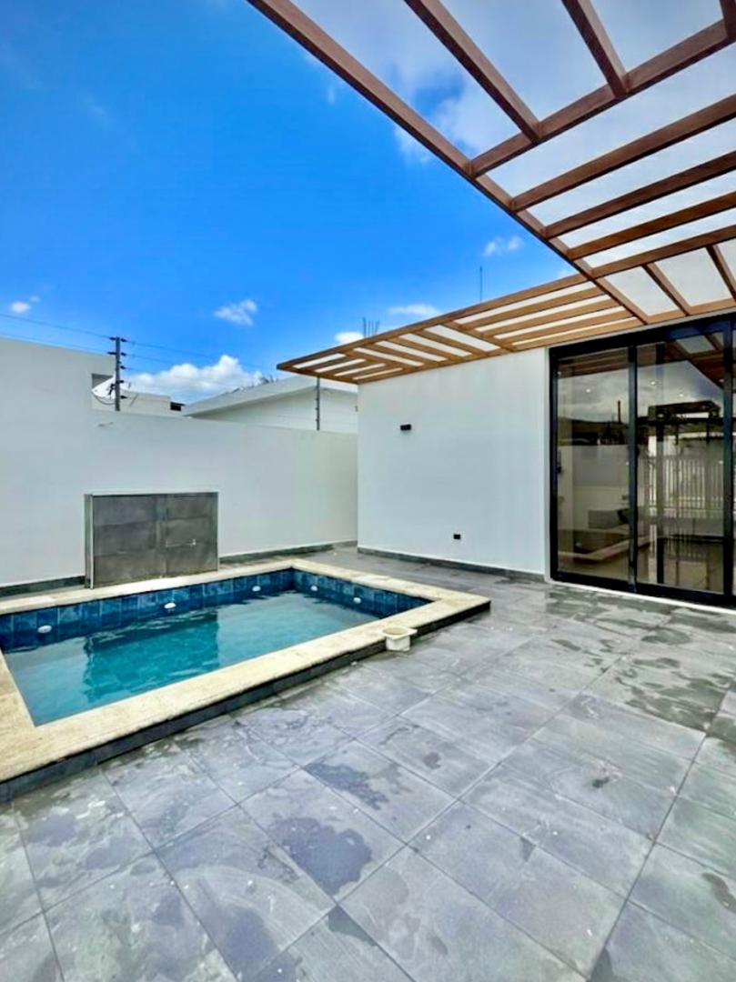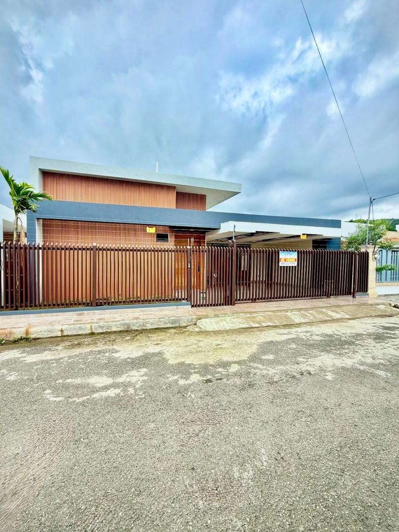 Schönes und hochwertig ausgestattetes Wohnhaus in einer strukturierten und guten Wohnsiedlung im Süden von La Vega. Die mit brasilianischem Vollholz ausgestattete Immobilie ist ein Erstbezug und verfügt über 3 Schlafzimmer, 4 Bäder, ein großes Wohnzimmer, eine Küche mit Esszimmer, einen Schrankraum und einen Abstellraum. Die 4 Bäder sind geschmackvoll und hochwertig ausgestattet. Die Küche ist möbliert. Die Wohnräume und Freiflächen sind edel verfließt. Im geschützten Innenhof wurde ein Pool mit ca. 2,5 x 4,5 m angelegt. Der KFZ-Einfahrtsbereich ist überdacht.