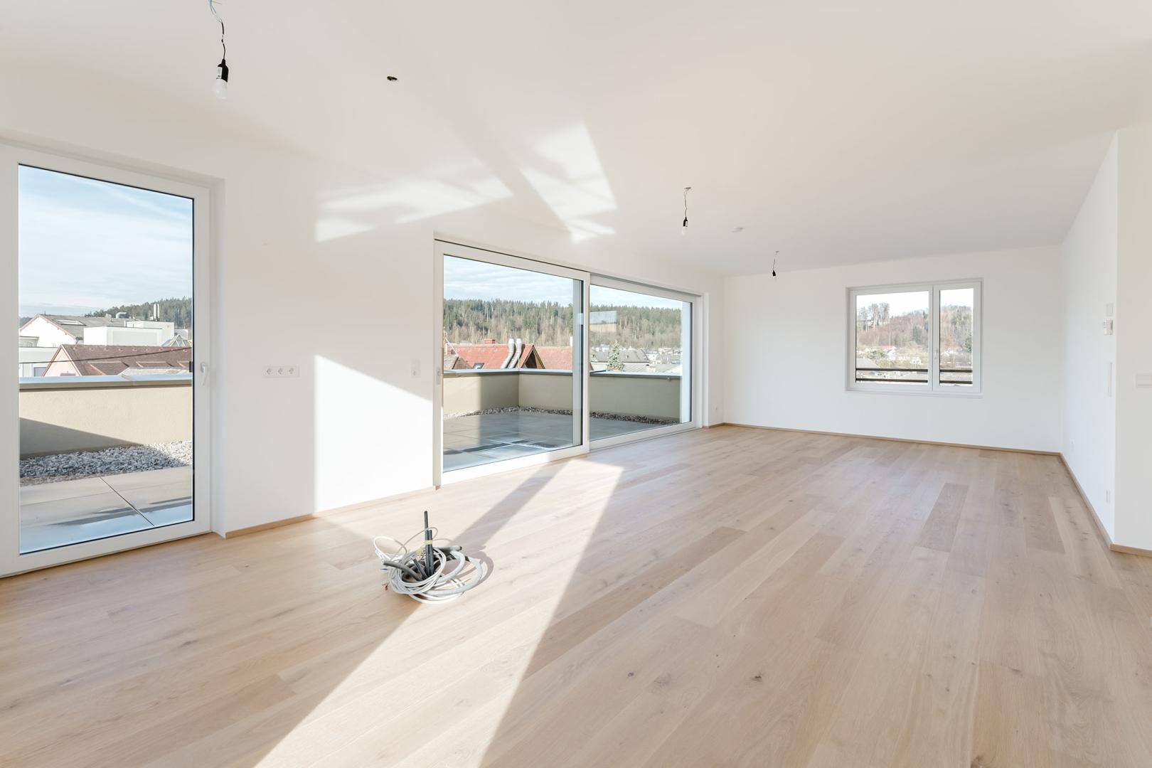 Ein echtes Highlight der Anlage stellen die Penthouse-Wohnungen dar, die neben geräumigen Loggien teilweise auch über begrünte Dachgärten und Dachterrassen verfügen. Ein herrlicher Ausblick über die Dächer von Vöcklabruck wird geboten!
