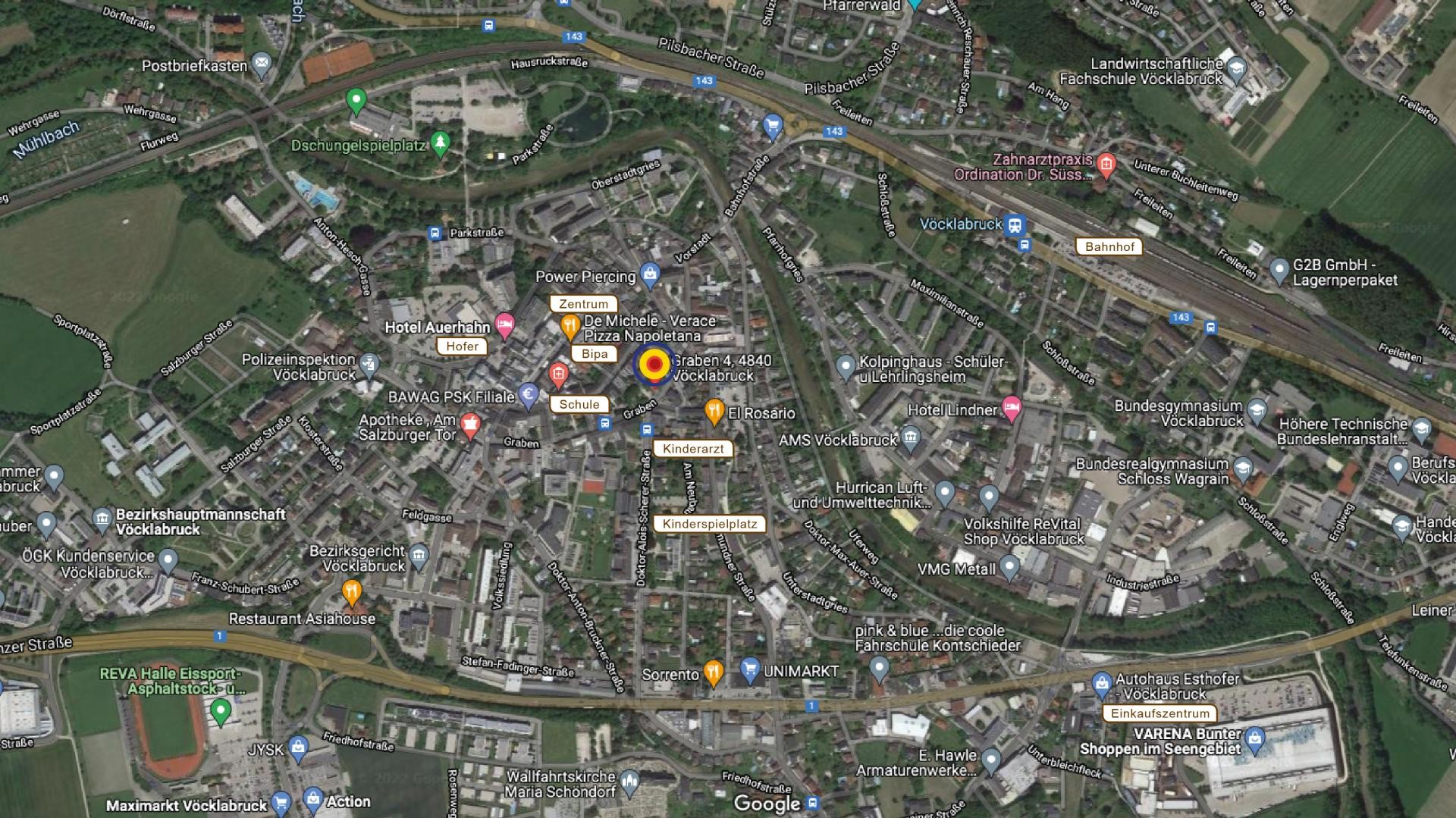 Mitten in Vöcklabruck und trotzdem ruhig gelegen. Dank Tiefgarage ohne Parkplatzsorgen, dafür mit einem vielseitigen kulinarischen Angebot in der näheren Umgebung. Der Stadtplatz ist in nur einer Minute zu erreichen.