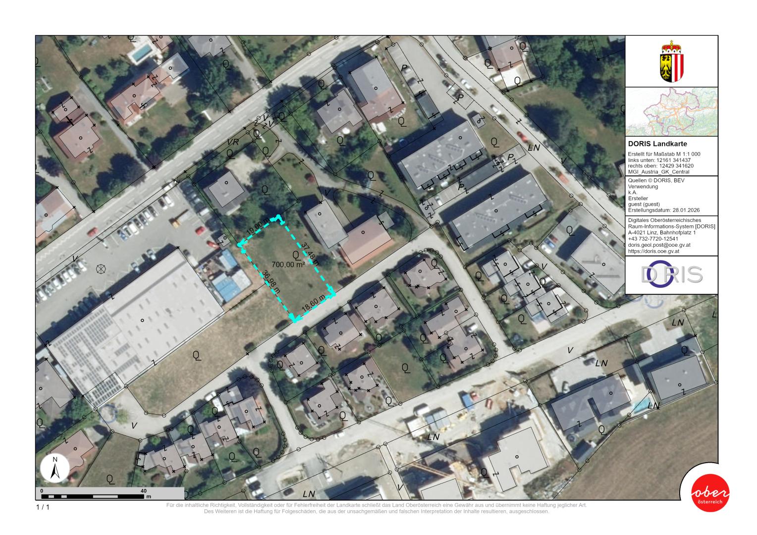 Das gegenständliche und optimal ausgerichtete Grundstück mit ca. 700 m² befindet sich in einer ruhigen Sackgasse und ist großteils von Einfamilienhausstrukturen umgeben. Die Grundstücksgröße bietet Ihnen flexible Bebauungsvarianten. Der Bebauungsplan sieht eine Bebauung mit einer GFZ (Geschossflächenzahl) von 0,4 vor.