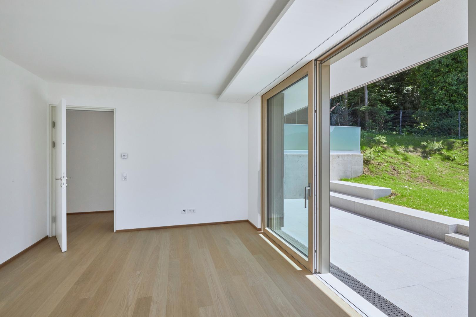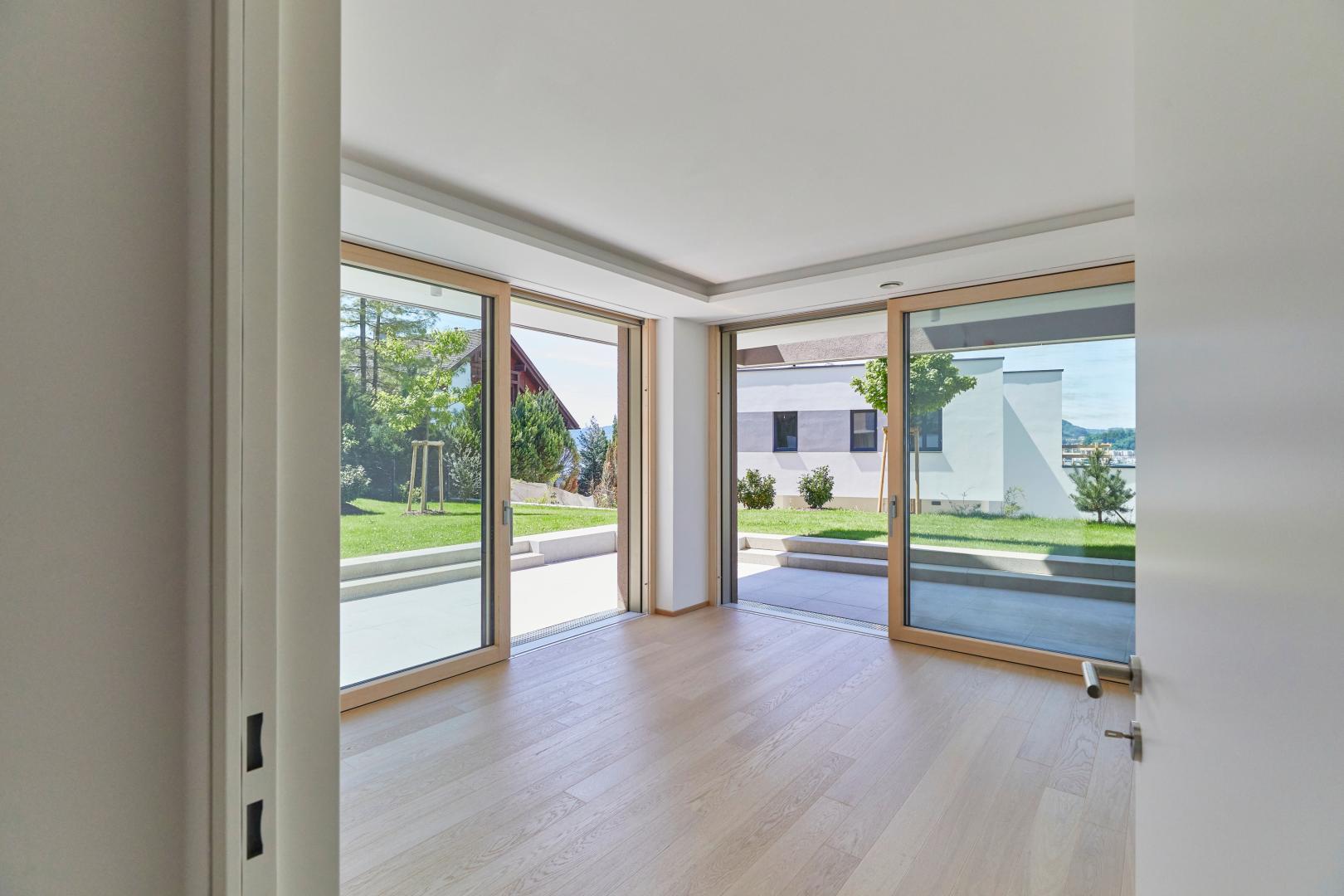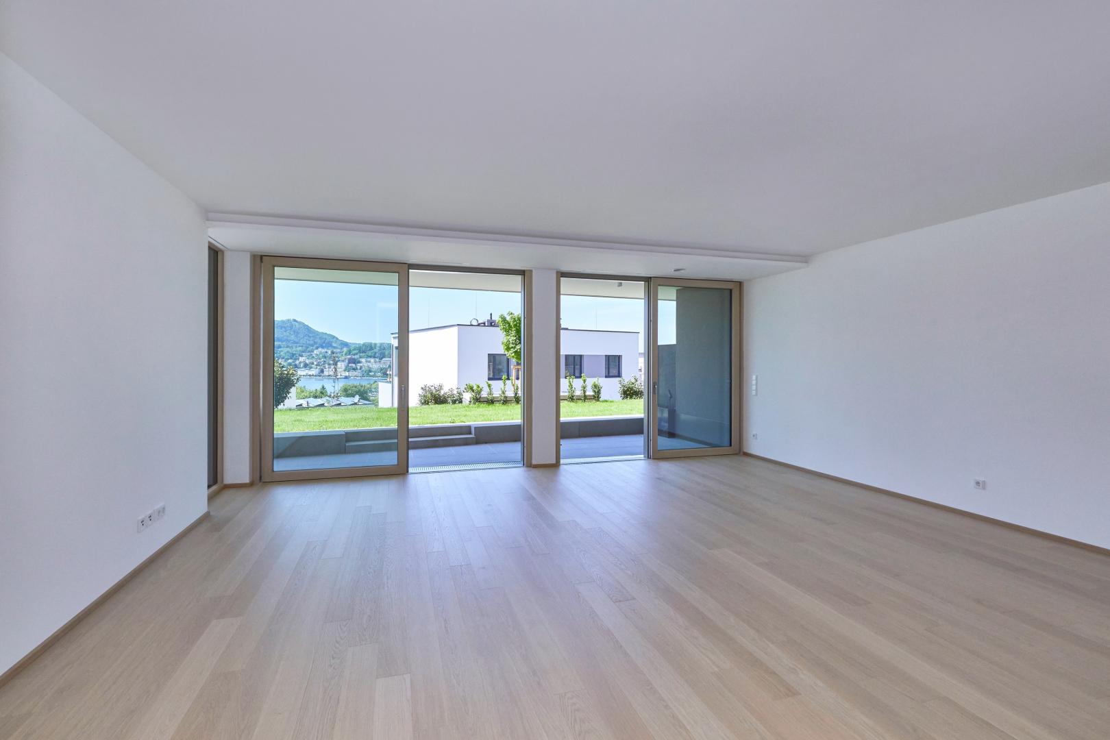 Die ca. 117 m² große und ruhige Gartenwohnung befindet sich am Rand des Baukörpers, verfügt über 4-Zimmer und eine ca. 43 m² große Terrasse mit einem anschließendem ca. 291 m² großen Eigengarten. Die Immobilie bietet einen partiellen Blick auf den Traunsee und das Schloss Ort.