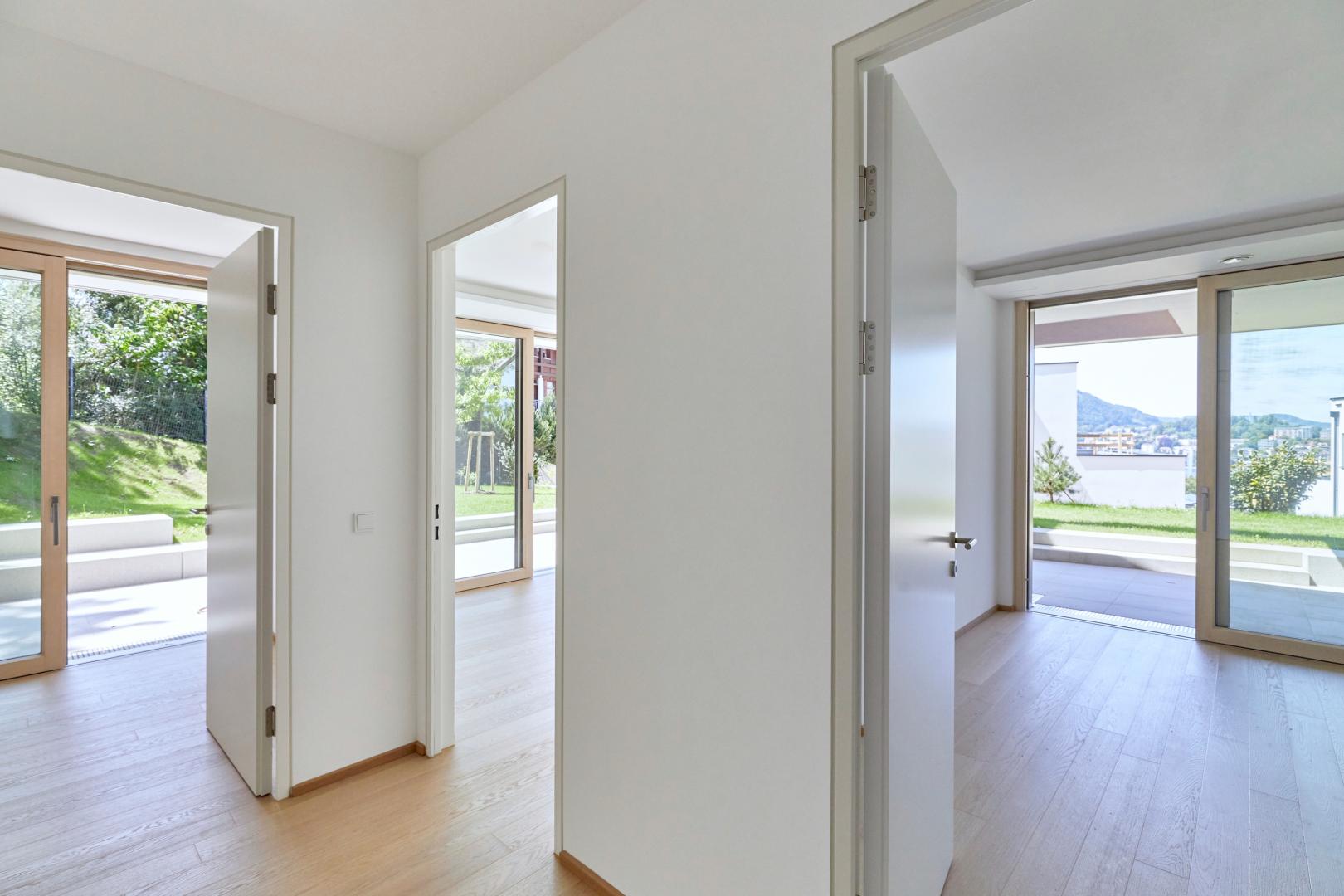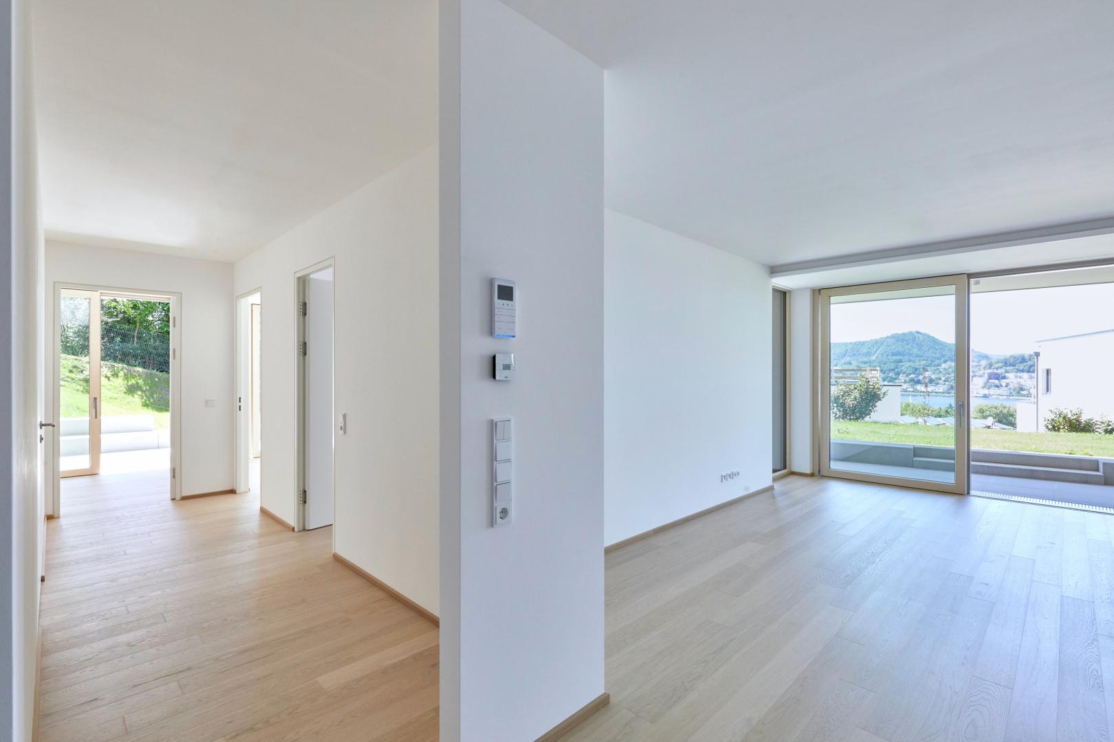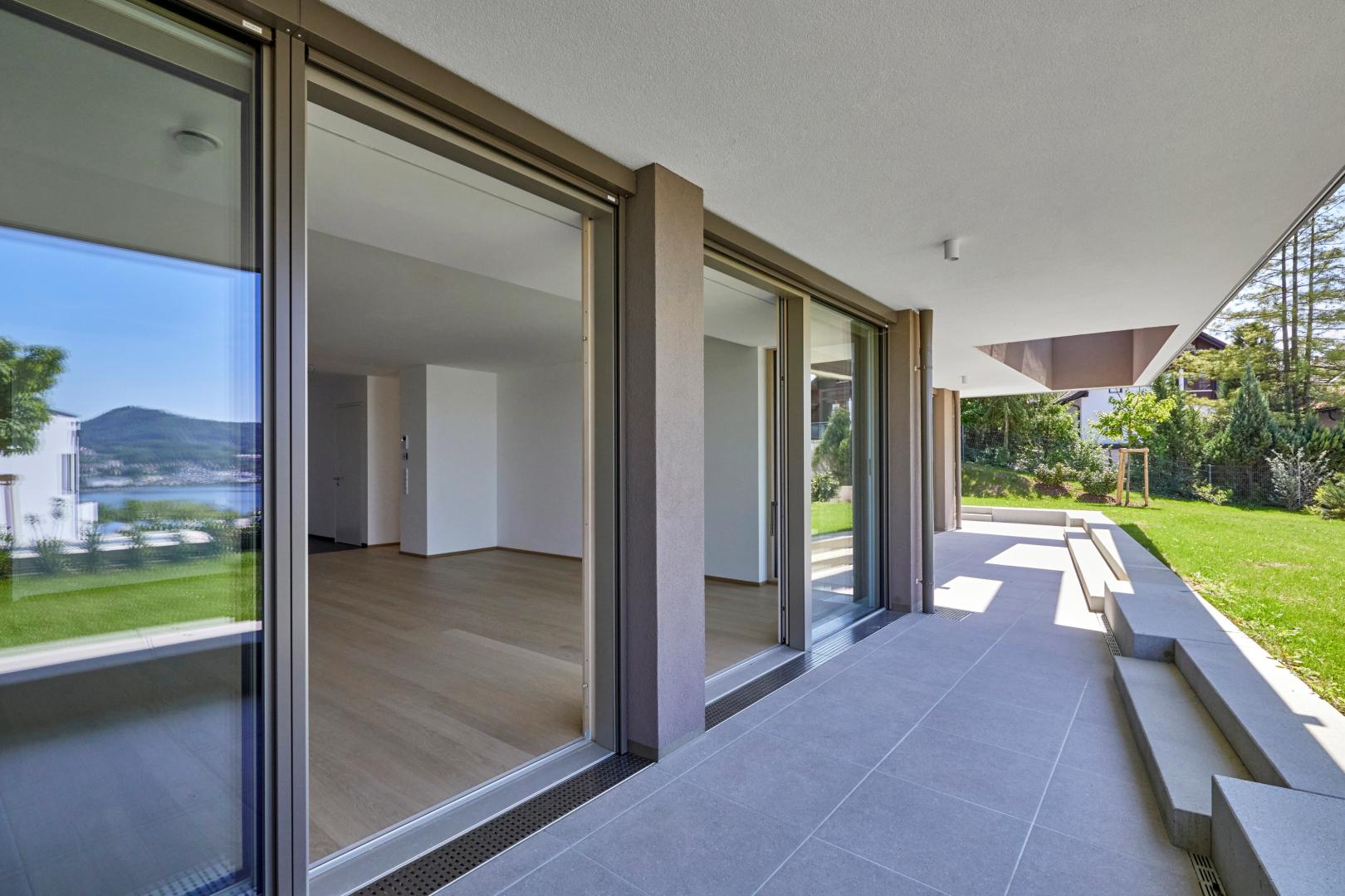 Die ca. 117 m² große und ruhige Gartenwohnung befindet sich am Rand des Baukörpers, verfügt über 4-Zimmer und eine ca. 43 m² große Terrasse mit einem anschließendem ca. 291 m² großen Eigengarten. Die Immobilie bietet einen partiellen Blick auf den Traunsee und das Schloss Ort.