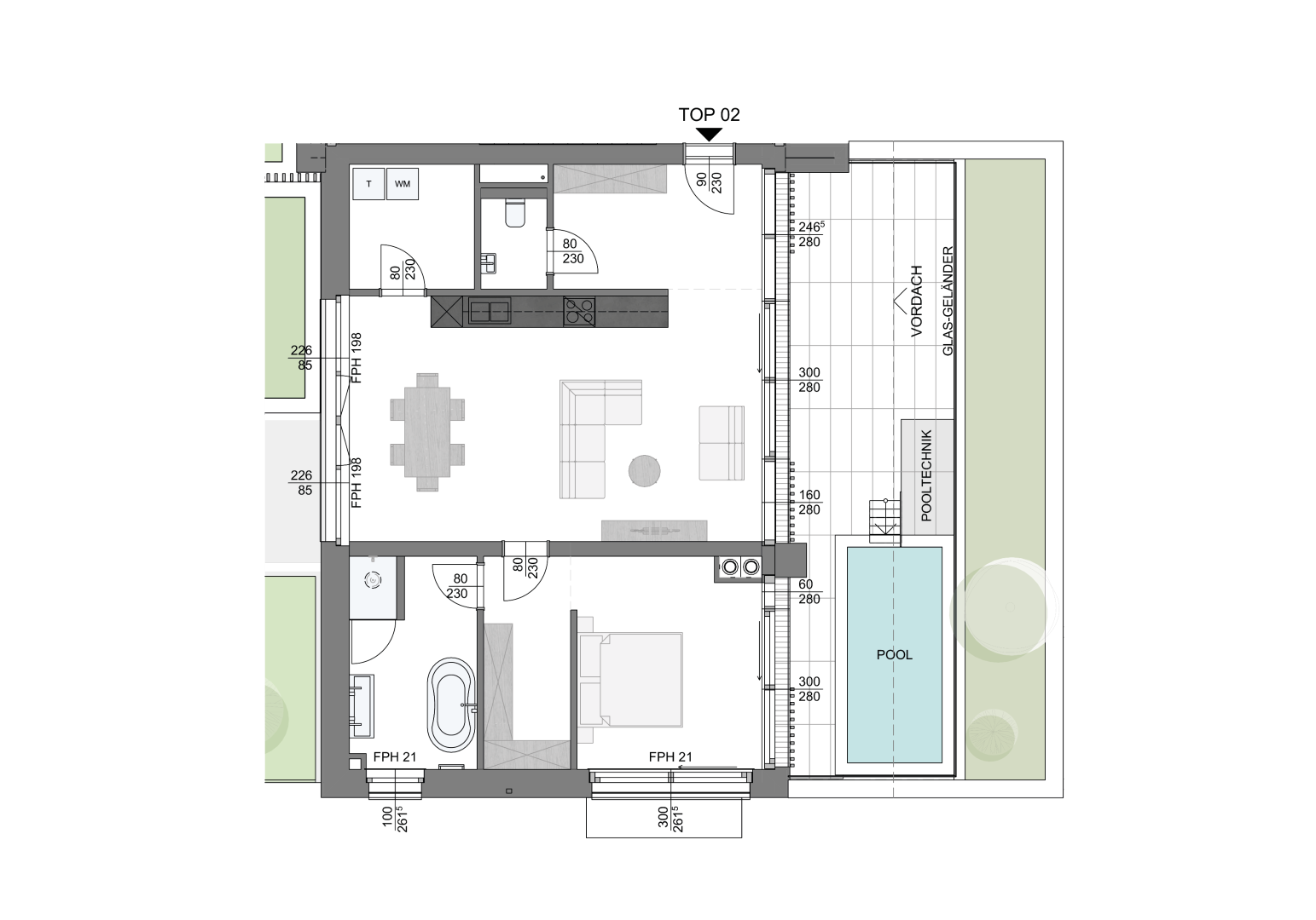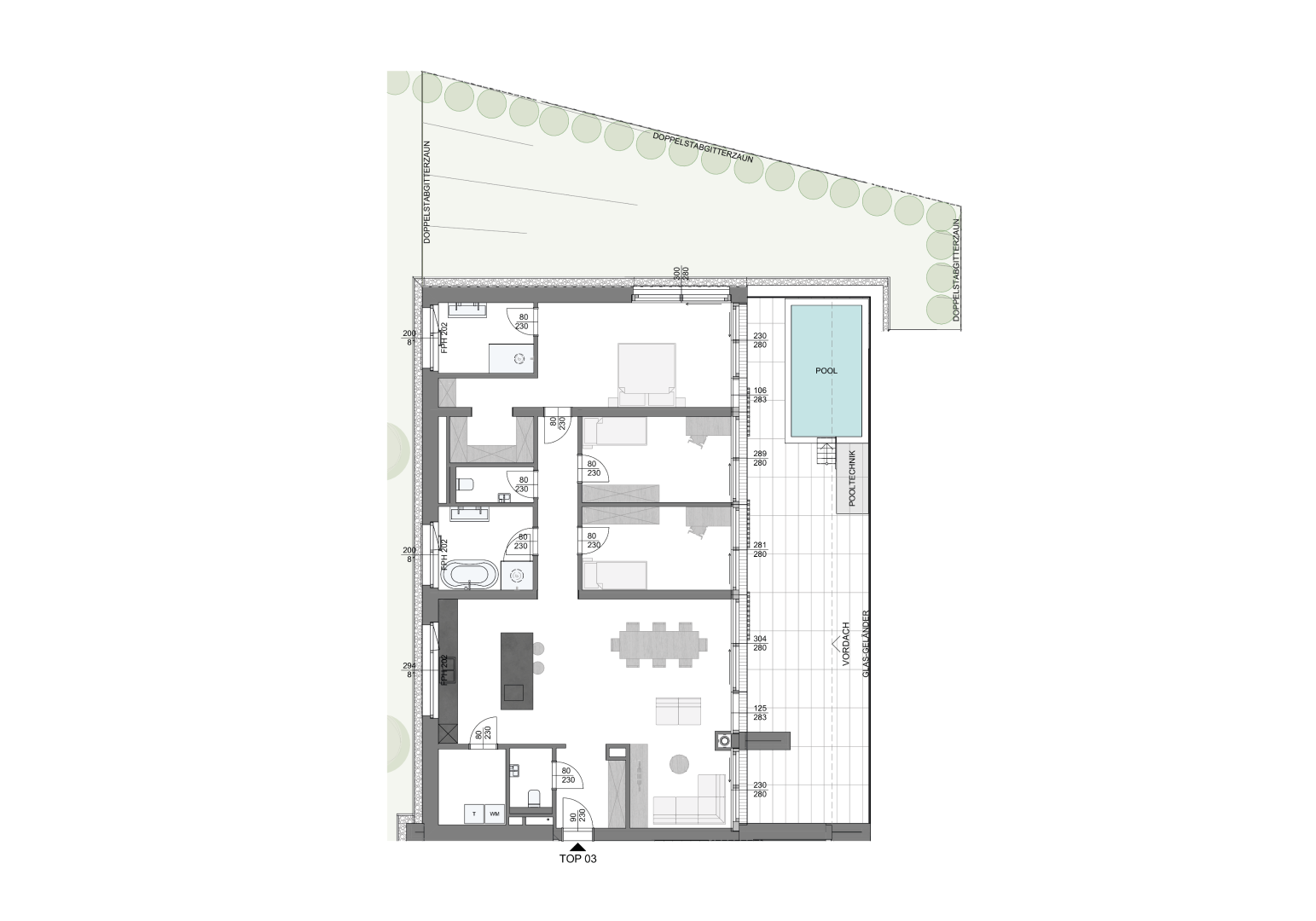 Top 06 – UG – 135,74 m² – Terrasse: 86,32 m² – Eigengarten: 103,68 m²