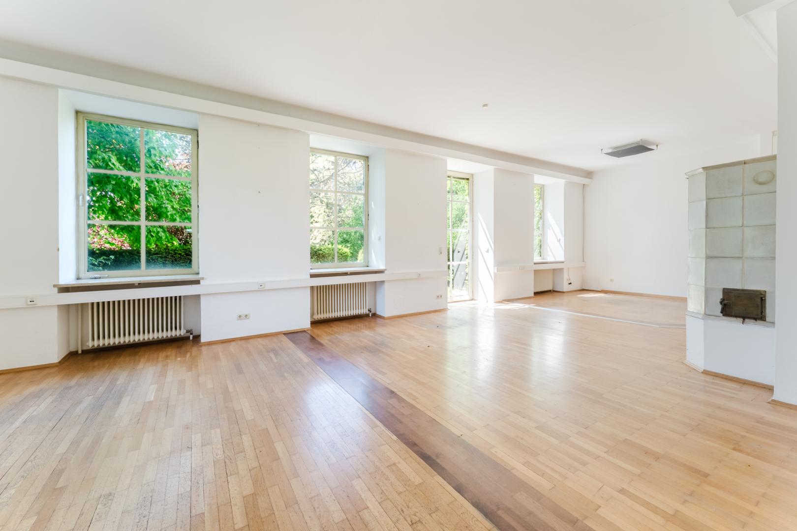 DIE 4-Zimmer-WOHNUNG, im Gartengeschoss, mit einer Nutzfläche von ca. 161,71 m², verfügt aktuell über vier unterschiedlich große Zimmer, eine Diele, eine Teeküche, ein Bad mit WC und ein weiteres WC. Der Zugang zur Wohnung erfolgt über die Allgemeinfläche des Stiegenhauses. Eine eigene Eingangsmöglichkeit könnte im Zuge von Umbauarbeiten geschaffen werden.