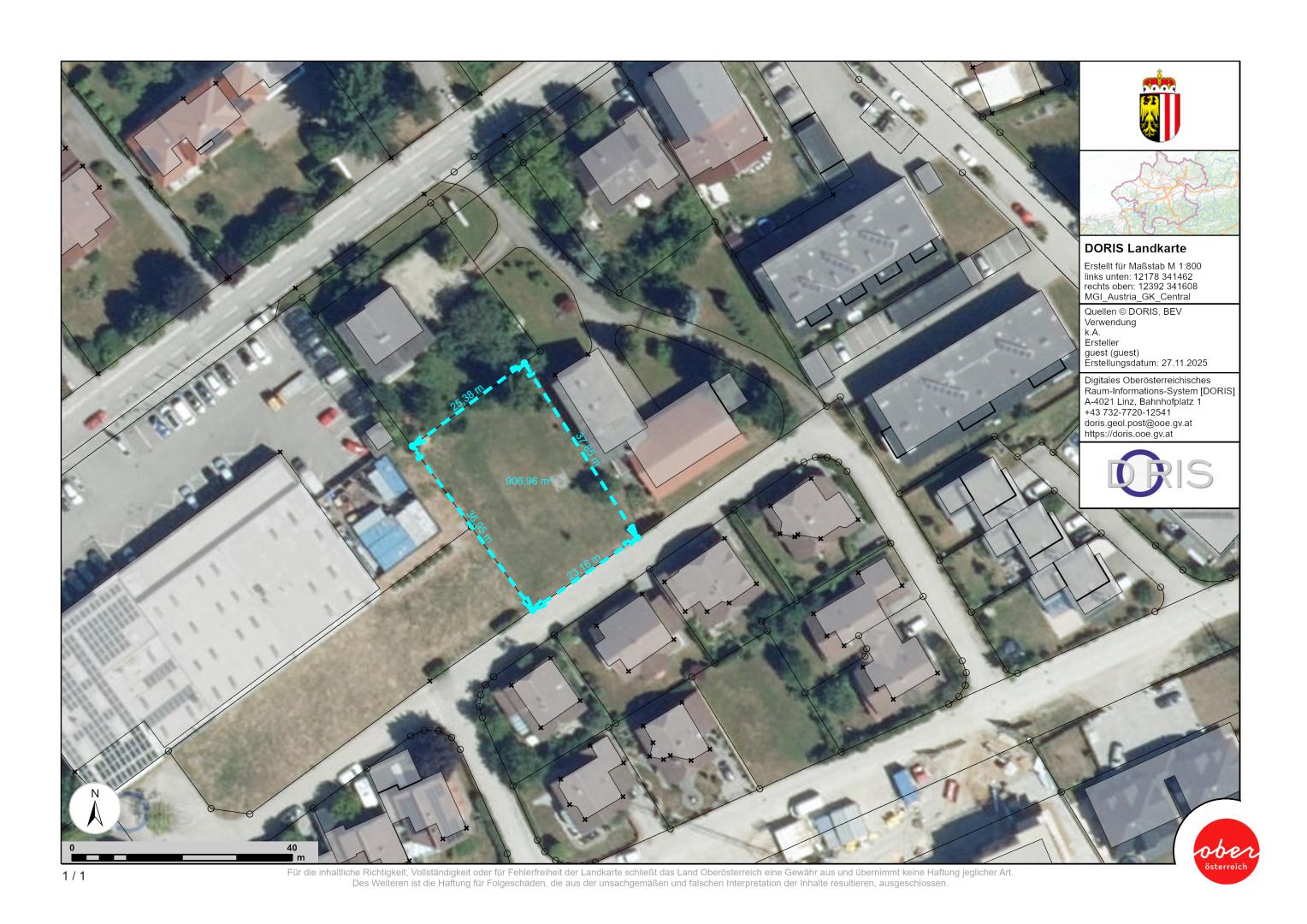 Da das Grundstück momentan noch Teil eines größeren Grundstückes ist, wird das Grundstück somit folglich noch vermessen und bekommt eine eigene Einlagezahl und Grundstücksnummer. Die Grundstückgröße beträgt dann ca. 900 m².