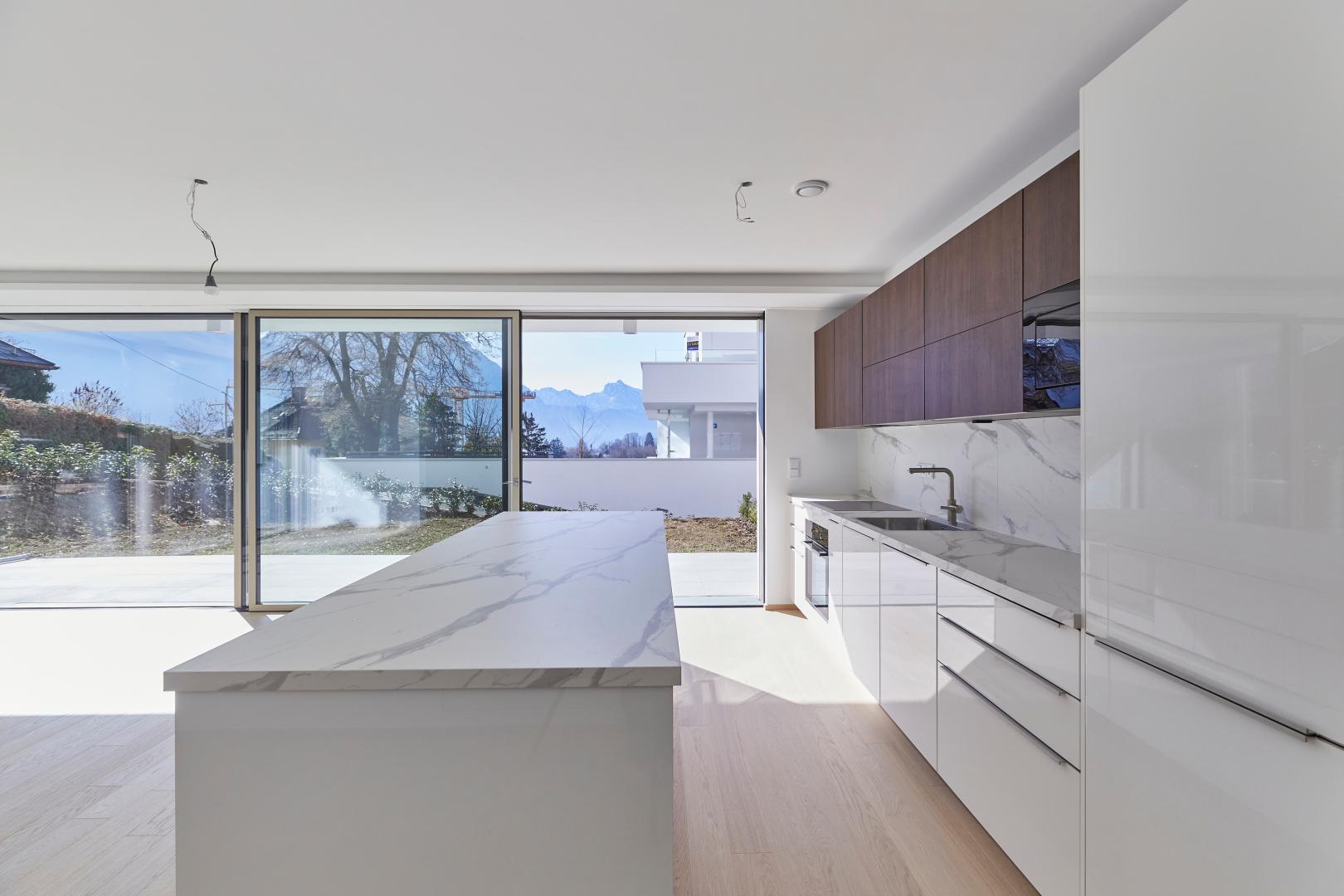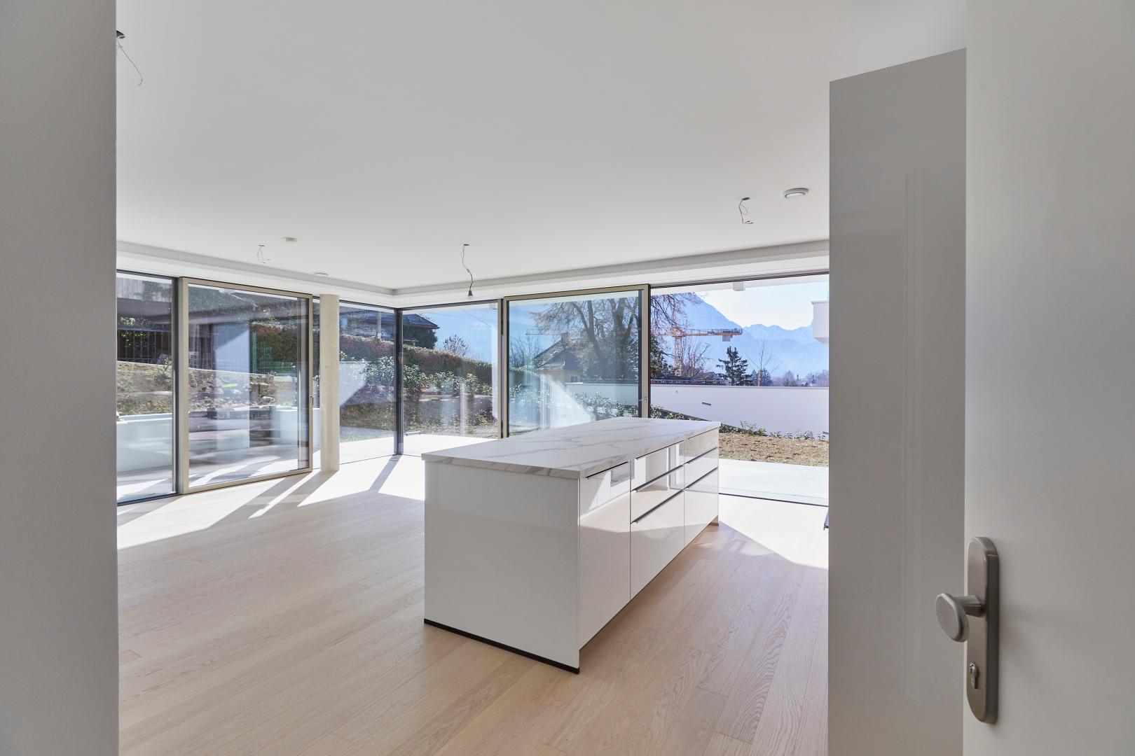 Die zwei harmonischen Baukörper umfassen 10 hochwertige Wohnungen und 2 exklusive Penthäuser auf jeweils 4 Geschoßen. Die Erschließung erfolgt jeweils im Erdgeschoss über ein eigenes Stiegenhaus sowie gedeckt durch die Tiefgarage. In der Tiefgarage sind insgesamt 16 Stellplätze situiert. Für Besucher stehen 3 Freistellplätze zur Verfügung. Die sehr ruhig gelegenen Wohneinheiten werden als 2-, 3- und 4-Raum-Wohnungen bzw. Penthäuser ausgeführt. Jeder Wohnung bzw. jedem Penthouse ist eine große Terrasse zugeordnet. Die Erdgeschoss-Wohnungen erhalten überwiegend Eigengärten. Die Wohnhausanlage wird mit einer Erdwärmepumpe inklusive Betonkernaktivierung zum Kühlen ausgestattet. Die edle Ausstattung umfasst hochwertige Josko ONE und Josko ONE S Aluelemente – teils Rahmenlos und sehr schmal. Für einen weiteren Wohlfühlfaktor sorgen die edlen Parkettbodenvarianten Landhausdiele Nuss, Natur oder Fischgrät Eiche Natur, Eiche Weiss oder Nuss Natur.