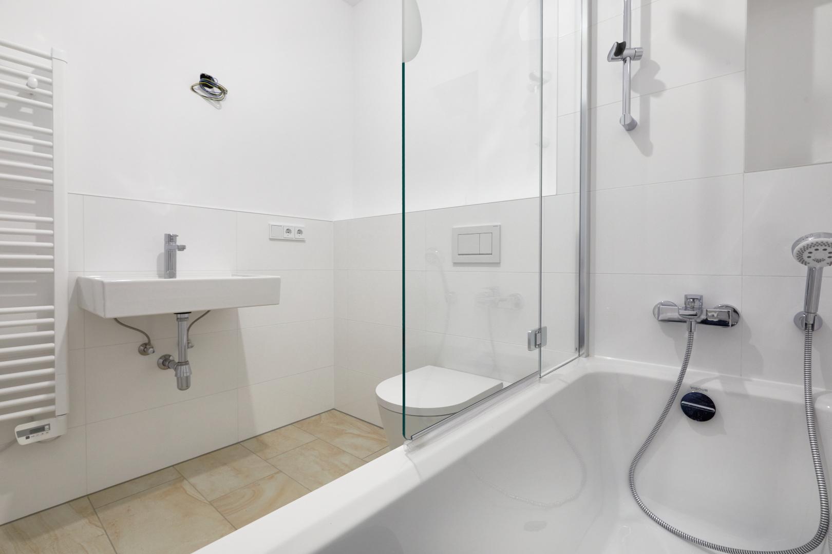 Das Bad ist mit einer Badewanne ausgestattet. Ein Abstellraum mit einem Waschmaschinenanschluss ist gut durchdacht. Das Highlight der Wohnung ist das Wohnzimmer mit Wohnküche und anschließender Loggia und Terrasse.