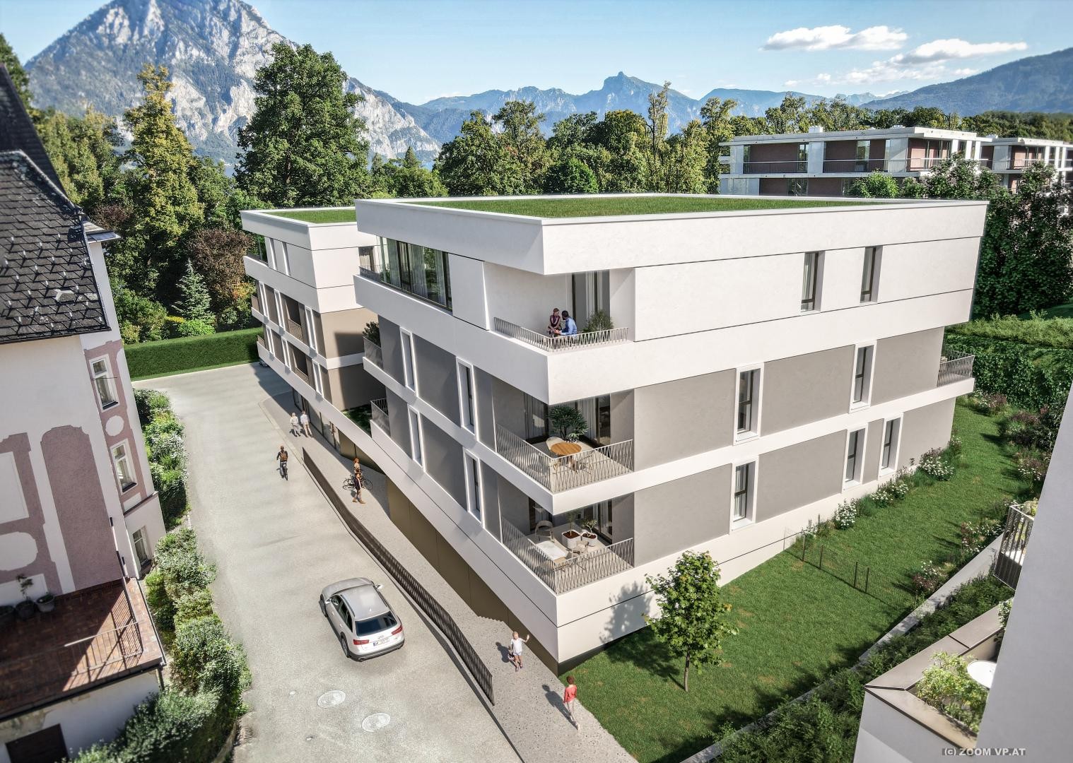 + Weitläufige Terrassen mit Eigengärten / teilweise Dachgärten + Großzügige Balkone